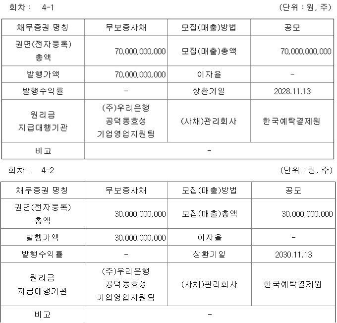 기관투자자 대상 수요예측은 오는 5일 진행된다. 7일 확정공시를 통해 발행규모가 결정될 예정이며 수요예측 결과에 따라 최대 1500억원까지 증액이 가능하다.