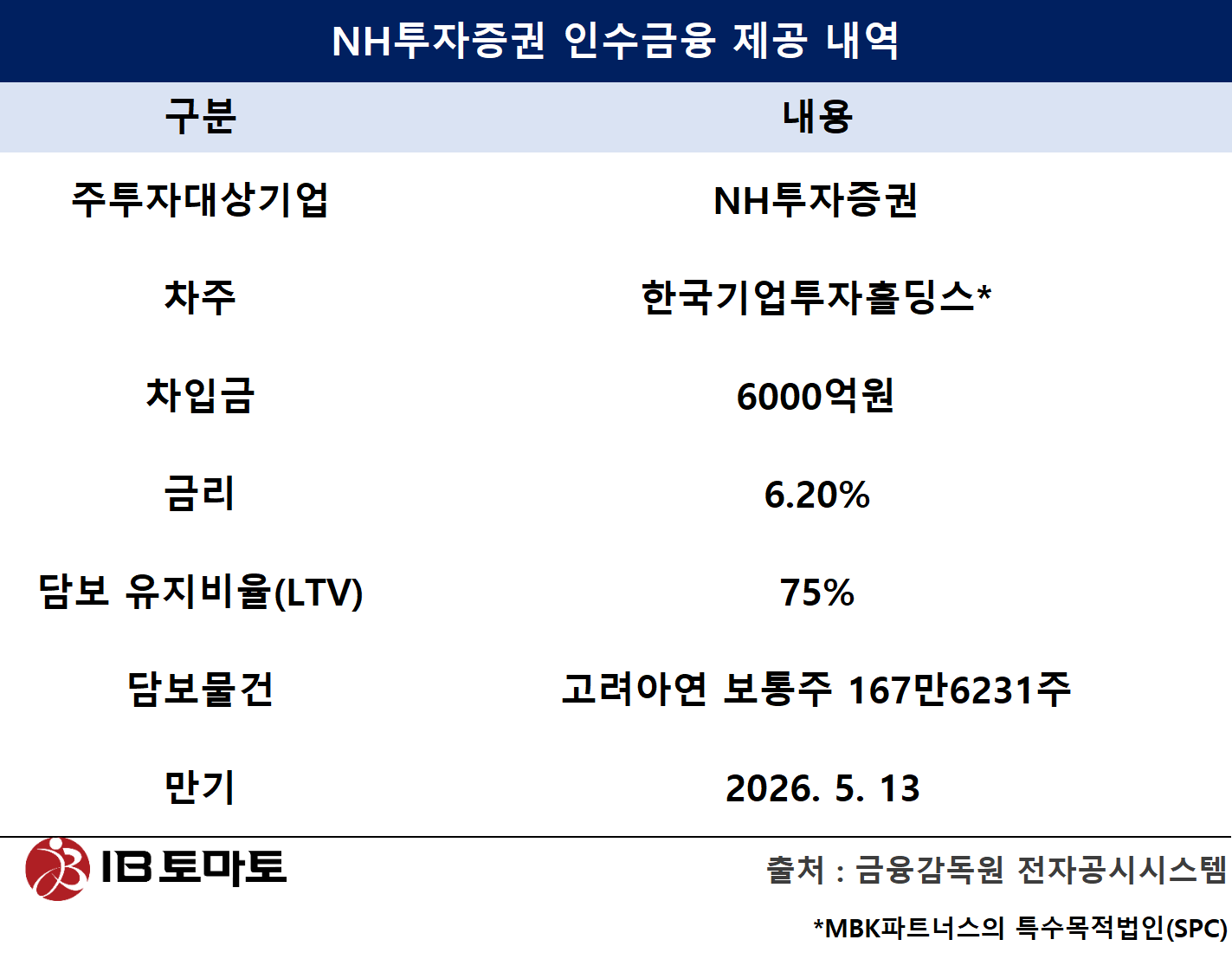 금융투자업계 관계자는 <IB토마토>에 “IMA 인가를 앞둔 NH투자증권은 MBK파트너스와의 관계에 대해서 적지 않은 부담감을 느끼는 것으로 보인다”라며 “현재 시장 상황을 고려하면 만기 연장을 위해선 MBK파트너스가 연 6% 이상의 조건을 제시해야 할 상황”이라고 평가했다.