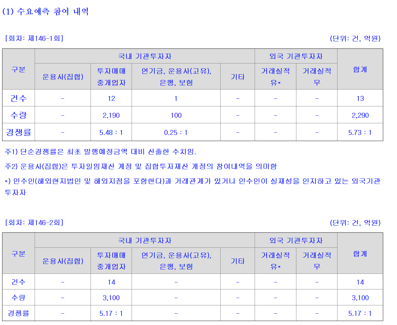 29일 금융감독원 전자공시시스템에 따르면 SKC는 무보증 사채 발행규모(146-1회, 146-2회)를 1000억원에서 1390억원으로 39% 증액 발행에 성공했다. 수요예측 과정에서 약 5000억원이 넘는 자금이 몰리며 성공적으로 발행을 마무리할 수 있었다. 2년물(146-1회)에 790억원, 3년물(146-2회)에 600억원이 몰리며 당초 발행예정금액(총1000억원)을 웃도는 수요가 확인됐다. 2년물 경쟁률은 5.73대 1, 3년물은 5.17대 1을 기록했다.