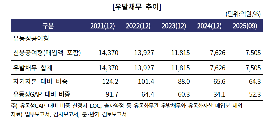 PF 익스포저는 채무보증 이행액 포함 기준 6595억원으로 감소했다. 2024년 말에는 6973억원이었다. 자기자본 대비 비중은 56.5%로 양적인 위험은 완화됐다.