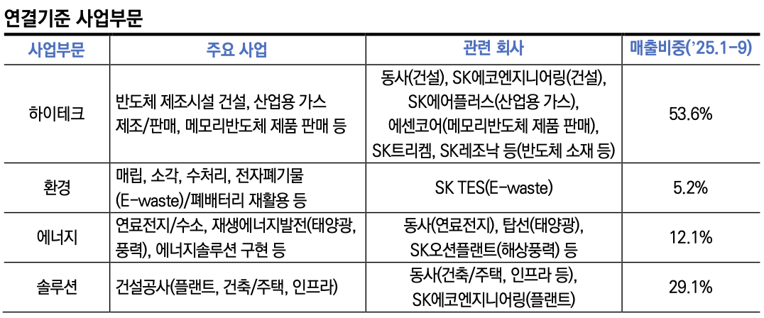장수명 한국신용평가 수석연구원은 최근 보고서에서 “풍부한 계열사 공사 물량과 하이테크 자회사들의 안정적인 수익 창출력을 바탕으로 재무적 불확실성을 통제해 나갈 전망”이라며 “특히 SK하이닉스 등 그룹 주력 계열사의 투자가 집중되는 AI 데이터센터 및 반도체 분야의 수주를 확대해 사업 안정성이 더욱 커질 것으로 보인다”라고 밝혔다.