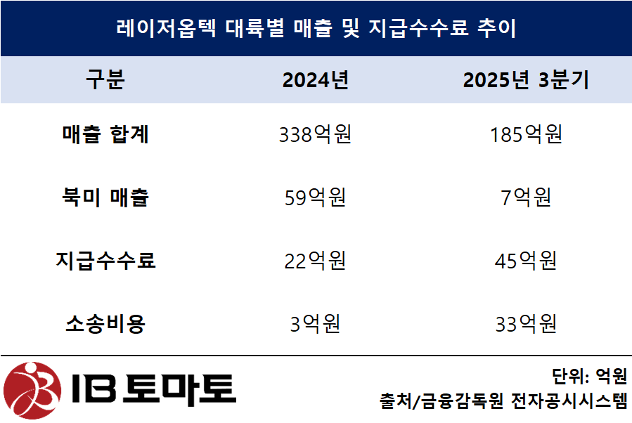 레이저옵텍(199550)이 미국 소송 여파로 북미 매출이 급감하며 전체 매출에 큰 타격을 입은 것으로 나타났다. 레이저옵텍 측은 원고가 주장의 근거로 제시하는 보험 코드가 사측에 유리하게 변경되는 것으로 결정돼 해당 소송 이슈가 점진적으로 해소되고 있다는 입장을 피력하고 있지만, 현지 법원은 본안에서 쟁점을 가려야 한다고 판단하며 이슈가 장기화될 조짐을 보이고 있다. 소송이 장기화된다면 관련 비용 지출이 이어지며 수익성에도 지속적인 악영향을 미칠 것으로 보인다.