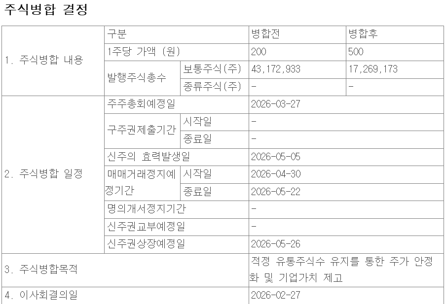 다만 자본시장에서는 동전주 이미지 탈피나 관리종목 지정 요건 개선을 위해 병합을 활용하는 사례가 적지 않기 때문에 주의가 필요하다. 주식 수가 지나치게 적으면 변동성이 확대되고 기관투자가 접근성이 떨어질 수 있기 때문이다. 병합 자체가 기업의 본질가치를 변화시키는 것은 아니다. 주당순이익이나 주당순자산 등 주당 지표가 기계적으로 조정될 뿐 실질적인 영업성과에는 변화가 없다는 점을 유의해야 한다.