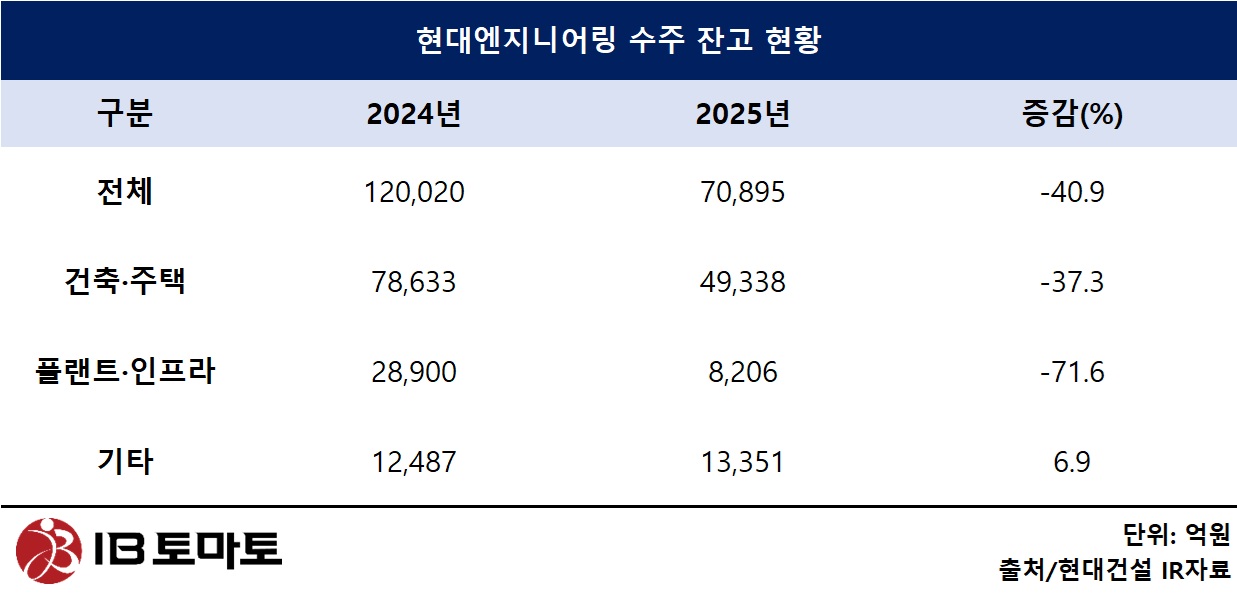 현대엔지니어링 관계자는 <IB토마토>와의 통화에서 "지난해에는 사고 이후 내부 안전 점검과 사업 구조 점검에 집중하면서 수주 확대보다는 내실 경영에 무게를 둔 시기였다"며 "현재는 국내외 다양한 사업을 검토하며 수주 확대를 위해 노력하고 있다"고 설명했다. 이어 "데이터센터 등 신규 사업 분야도 검토하고 있지만 구체적인 사업은 발주처와 계약이 체결되기 전까지 공개하기 어렵다"고 말했다.