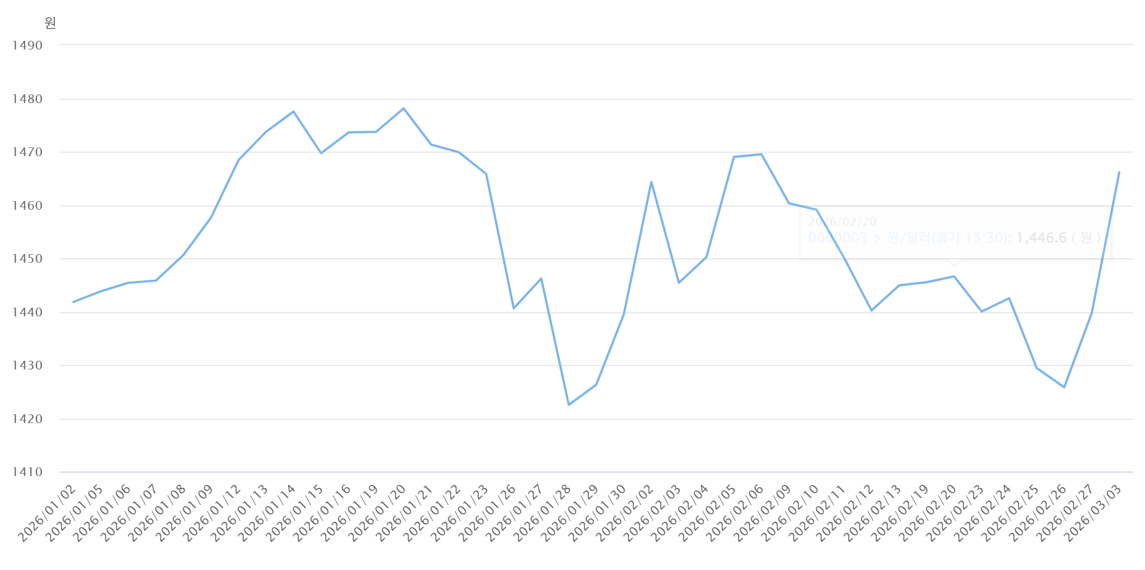 원·달러 환율은 변동성이 높은 탓에 안정성 제고가 절실한 상황이다. 지난해 환율 추이는 종가 기준 1월 1452.7원으로 시작해 6월 1350원까지 내려갔다가 다시 상승하면서 11월 1470.6원까지 올랐다. 올해는 연초 1441.8원에서 형성됐다가 오르내리고를 반복하면서 전날 기준 1466.1원에서 마감했다. 전반적으로 고환율이 지속 중인 모습이다.