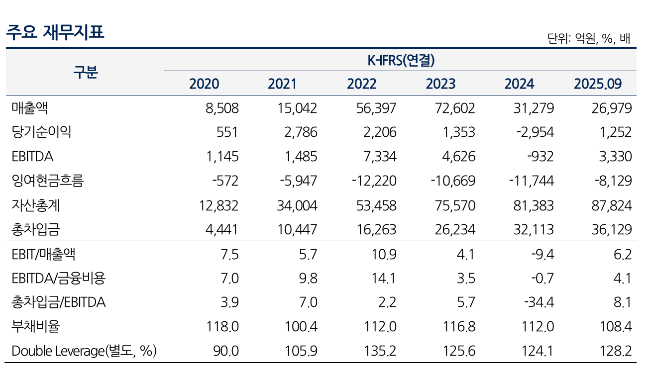 이에 따라 계열 순차입금 규모는 빠르게 증가했다. 순차입금은 2021년 말 7294억원에서 2025년 9월 말 약 2조 9000억원으로 확대됐다. 자회사 투자와 계열 출자 과정에서 지주사 차입도 늘어나면서 재무 여력도 힘에 부치는 모습이다.