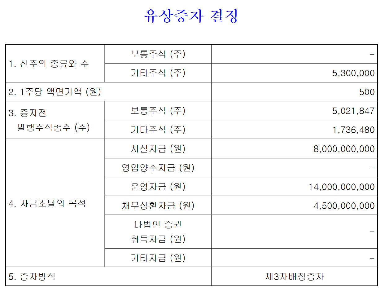 증자 방식은 제3자 배정이다. 대상자는 패스웨이유아이엘신기술조합1호(340만주), 패스웨이유아이엘신기술조합2호(190만주)다. 이들은 신주인수권을 얻는다. 소유 주식 수에 비례해 신주 배정을 받을 수 있는 권리다.