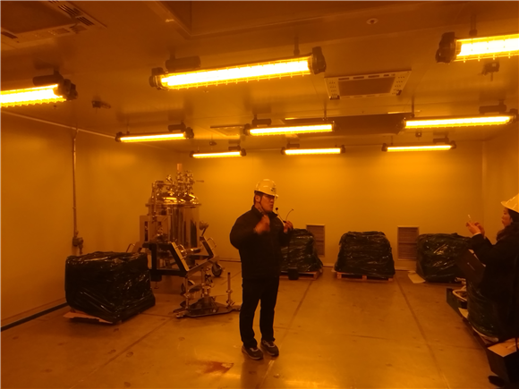 TV에서나 보던 방진복을 갖춰 입고 난생 처음 클린룸에 들어섰다. 생경한 경험도 잠시, 기묘한 노란불이 켜진 설비로 이동했다. 빛에 민감한 포토 공정 소재의 변성을 막기 위해 특정 파장 이하 빛을 차단했기 때문이라고 이 전무는 설명했다.