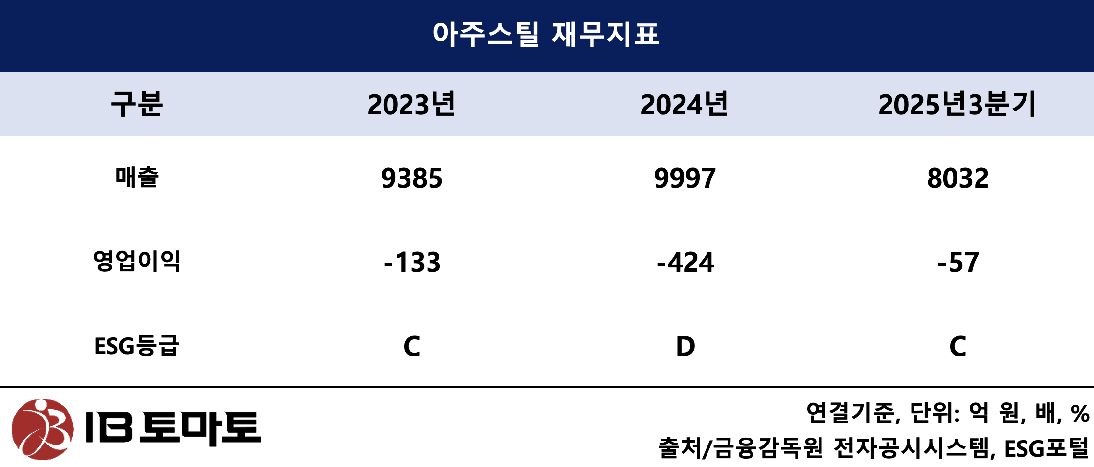 다만, 철강업계 ESG의 핵심인 환경 부문에 대한 평가는 변동이 없었다. 아주스틸은 2024년과 지난해 환경 부문에서 C등급을 받았다. 관련 업계에 따르면 환경 부문에 대한 평가 항목은 오염물질 배출량 정보 공개 여부, 환경 전담 조직 운영, 오염물질 배출량 감소 등으로 파악된다.