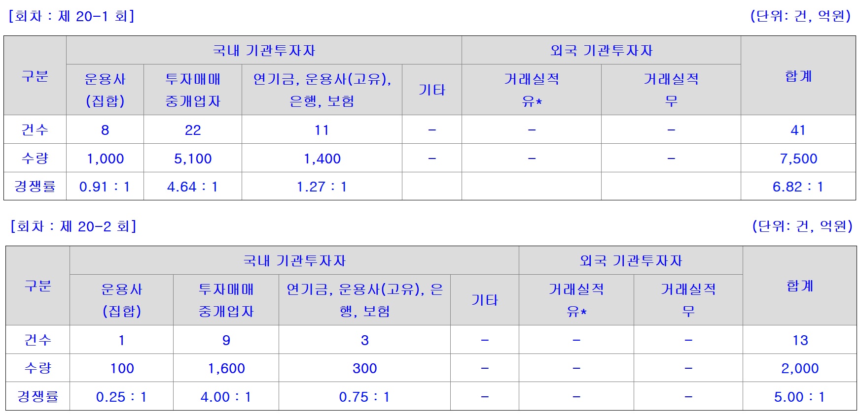 제20-1회 채권은 3년 만기 채권으로, 당초 1100억원을 모집할 계획이었으나 7500억원이 몰리면서 경쟁률 6.82대 1을 기록했다. 400억원 규모 5년물 채권인 제20-2회차에는 2000억원의 자금이 쏠리면서 경쟁률이 5대 1에 달했다. 이에 제20-1회차는 1700억원으로, 제20-2회차는 600억원으로 늘려 총 2300억원 규모로 증액 발행할 예정이다.