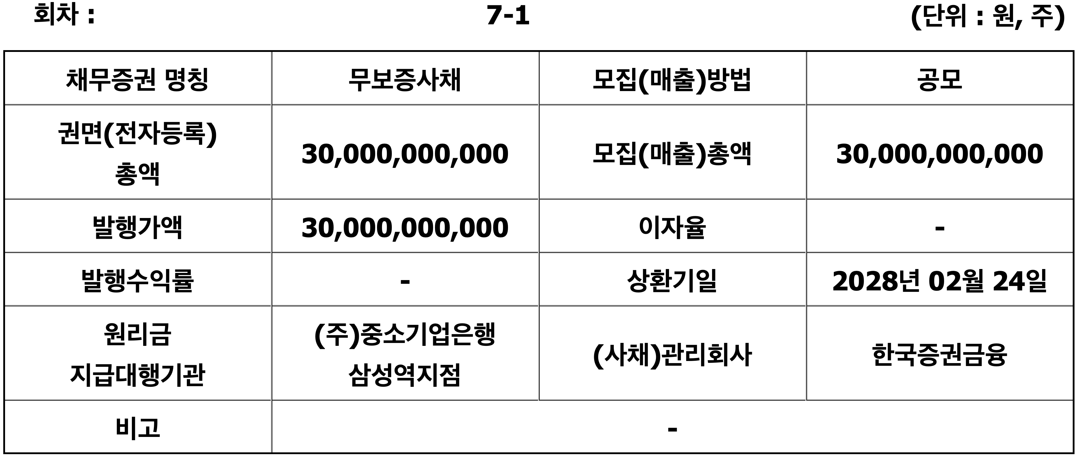 수요예측은 오는 12일 하루 예정돼 있으며, 최소 50억원부터 신청이 가능하다. 대표주관회사는 NH투자증권(2년물)과 삼성증권(3년물)이 맡는다.