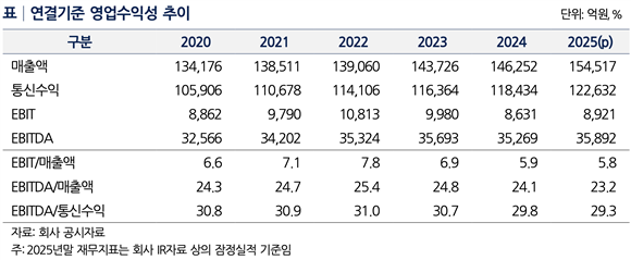 비용 효율화 작업도 진행 중이다. LG유플러스는 저수익 사업을 정리하고, 마케팅 비용과 인건비 감축 작업에 돌입해 영업이익률을 방어 중이다. 회사의 영업이익률은 2022년 7.8%에서 2024년 5.9%까지 하락했고, 올해는 5.8%가 될 것으로 예상된다. 지난해 1500억원 규모의 희망퇴직 발생 비용이 5%대 영업이익률의 원인으로 꼽힌다. 향후 인력 효율화 작업이 완료될 경우 중단기적 수익성 개선세가 나타날 것으로 보인다.